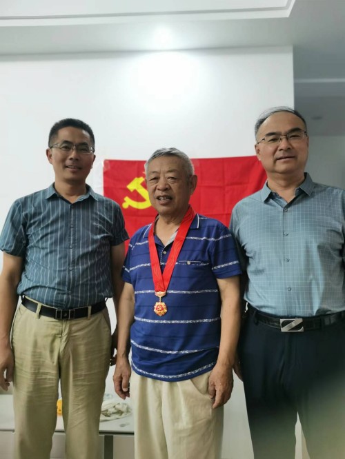 6月29日上午,电气与信息工程学院党委书记徐关怀,党委副书记、院长周孟然及办公室人员一行3人,专程上门为老党员王清灵同志颁发“光荣在党50年”纪念章、送上慰问品,并向他致以热烈的祝贺和崇高的敬意。
