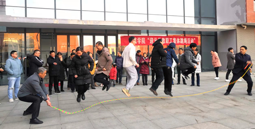 跳绳活动是冬季锻炼身体很好的运动方式,12月28日下午,电气与信息工程学院在励行楼东大门口前,举行了精彩的“迎元旦教职工集体跳绳比赛”,全体教职工参加活动。