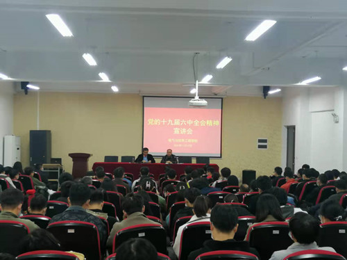 11月17日下午,电气与信息工程学院在励行楼B112报告厅,组织师生党员集中学习《中国共产党普通高等学校基层组织工作条例》、党的十九届六中全会精神。学院领导班子成员、各系(室)主要负责人、全体辅导员及师生党员代表参加学习。会议由学院党委副书记、院长周孟然主持。