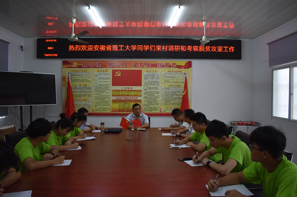 志愿者们首先走进寿县三觉镇人民政府,镇党政办杨主任向志愿者们介绍了三觉镇的基本情况和脱贫攻坚工作成效。杨主任说:贫穷树根扎的太深,仅靠农民自身难以挖净,单靠政府救济也只能解决燃眉之急,难以解决贫困之顽疾。对此,需要党群齐心,相互扶持,才能成功跑完精准扶贫最后一公里。镇、村两委干部白天忙工作,晚上下村入户了解情况,全镇14个村(街),拉网式访一遍要十多天,遇到群众有意见的地方,需要及时回访,着力解决群众关心的利益问题。据三觉镇内部资料显示,全镇贫困发生率由2014年年初的11.1%降至2019年年初的0.9%。镇、村两委干部走村串户,赢民心、聚民力,全力以赴攻脱贫的事实告诉我们:党群一心,就能齐力断穷根。