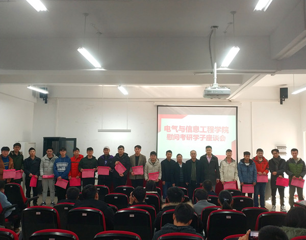 12月13日,电气与信息工程学院在励行楼B112报告厅开展鼓励慰问考研学生活动。学院执行院长周孟然、业务副院长欧阳名三、凌六一、毕业班辅导员和部分考研学生代表参加本次活动。会议由学院党委副书记徐泽绵主持。