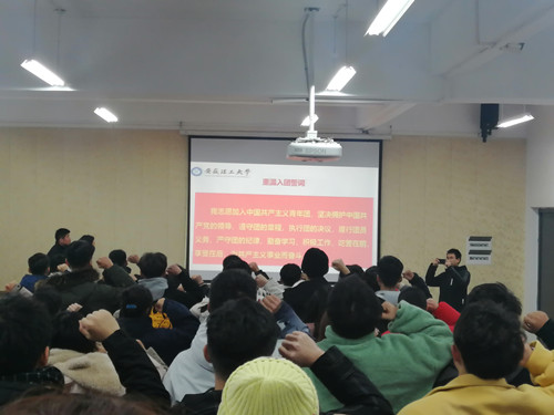 培训班班主任衡连伟介绍了此次培训班课程安排、培训纪律、考核要求等内容。随后,计算机学院信息安全19-1刘宇涵同学带领学员们重温入团誓词。