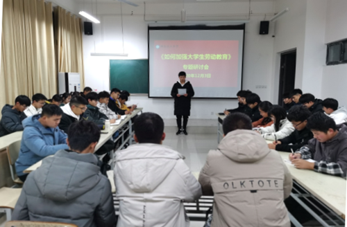 大力弘扬劳动精神,增强学生劳动观念。2020年秋季学期学生返校以来,学院通过专题研讨、主题班会、学生座谈会等多种途径,了解掌握学生思想动态,听取学生对开展劳动教育的意见、建议;各年级辅导员线上线下大力宣传弘扬劳动精神、劳模精神、工匠精神,让学生感受到扎根基层一线、平凡劳动亦能创造伟大,引导学生畅谈感想、体会,激发学生脚踏实地从事劳动、辛勤劳动、诚实劳动、创造性劳动的自觉性和主动性,内心真正以“不劳而获”为耻,切实增强学生对劳动价值的认同感。