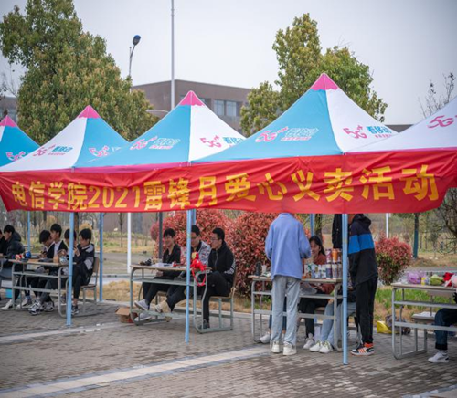 为推动学雷锋志愿服务活动深入开展,引导广大学生关注社会、关爱他人,3月27日至28日,电气与信息工程学院励行志愿服务队在爱苑食堂东侧开展为期2天的“雷锋月爱心义卖”活动,吸引了300余名师生参与。