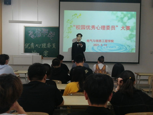 为充分发挥大学生心理委员在同辈教育中的重要作用,促进各班级心理委员之间相互学习、取长补短,提升大学生心理健康教育水平,5月14日下午,电气与信息工程学院在励行楼C103教室举办优秀心理委员大赛。2020级17名班级心理委员参加比赛。