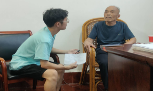 7月8日上午,队员们来到了太和县张文礼老党员家中进行访谈。张文礼老人1971年入伍,至今已有52年党龄。在部队时张文礼负责守卫边防,曾在江苏省滨海县服役,防止敌人对我国边界进犯。在聊到印象深刻的事情时,张文礼老人回顾了当时修建门闸使河流分支汇入主海,因河流流速急促,岸边的小船被冲入下流,自己独自一人孤身前往寻找船只,历经千辛万苦徒步近四五公里的路程,终于找回小船挽回损失的故事。访谈结束后,张爷爷寄语队员们,勤勤恳恳为人,扎扎实实求学。