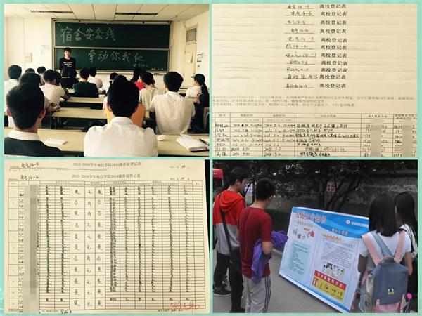 为切实抓好安全卫生工作,今年以来,学院扎实开展了一系列工作。从本学期初开始,实施了学生宿舍安全卫生周巡查制度,由各年级学生骨干组成的巡查组,每周交叉对每间学生宿舍及床位的安全卫生状况进行巡查并详细登记;实施了办公室、实验室双周巡查制度,切实抓好办公场所和实验室的安全卫生工作。“五一”假期前,学院特别制作了安全卫生知识宣传展板,分别在两个校区进行了宣传教育;各年级辅导员深入班级,开展“宿舍安全线,牵动你我他”的宿舍安全教育主题班会;通过QQ、微信、微博等形式,向广大学生大力宣传安全卫生知识;着实细致地做好学生的离校登记工作。系列活动的开展,切实增强了学院师生的安全防范意识,取得了良好成效。