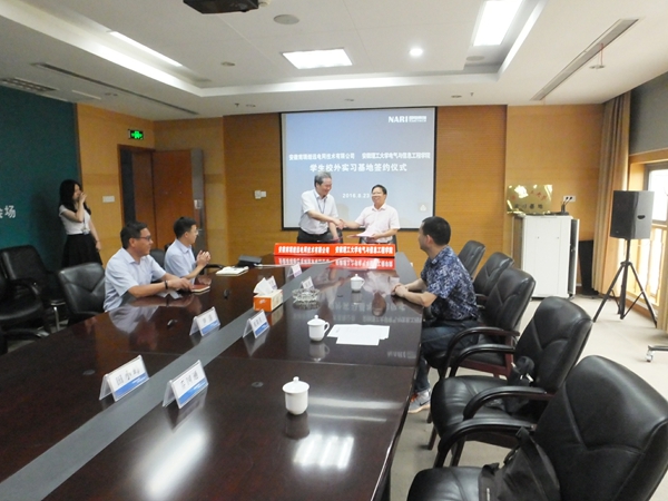 8月23日上午,学院与安徽南瑞继远电网技术有限公司实习基地协议签订仪式在合肥南瑞公司会议厅举行。南瑞继远电网技术有限公司总经理尹涛、学院副院长欧阳名三分别代表合作双方在协议书上签字,南瑞继远电网技术有限公司副总工程师王红光等公司领导、学院自动化系相关负责人等一同出席了签约仪式。