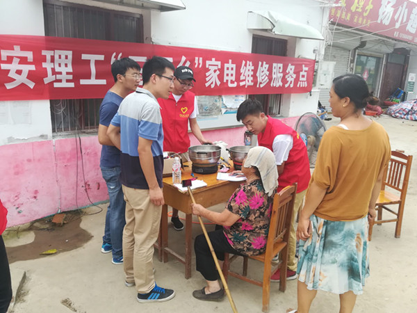 “孩子,帮我看看我的电风扇怎么不转了呢?”、“这个电饭锅没有反应,帮我看下怎么回事?”。上午10点,街上过往的居民逐渐多了起来,看到志愿者们在村委会门口开展免费维修家电的活动,村民赶紧回家把自家损坏的家电拿了出来。