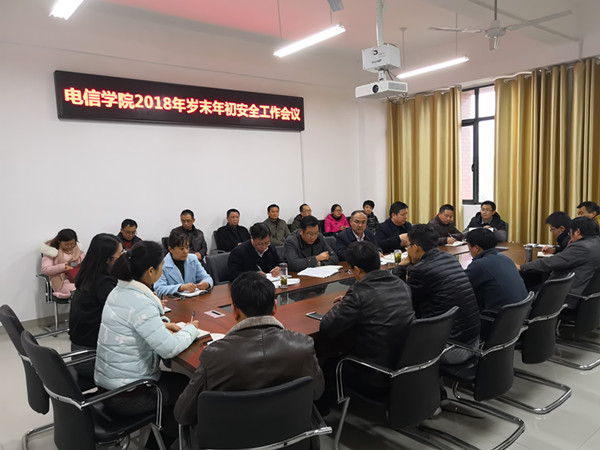 12月19日下午,学院在励行楼B415会议室召开专题会议,部署学院岁末年初安全工作。学院党政领导班子成员、各系(中心)主任、办公室全体成员、学生辅导员参加会议。会议由学院执行院长周孟然主持。