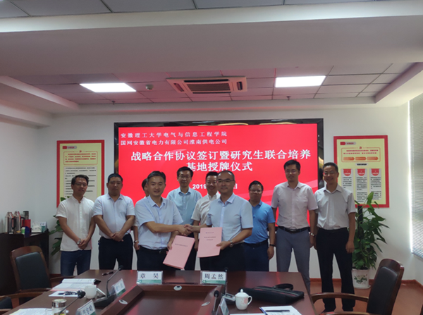 为推动学科建设,切实开展战略合作,促进产学研发展,8月30日上午,电气与信息工程学院与国网淮南供电公司战略合作协议签订暨研究生联合培养基地授牌仪式在淮南供电公司隆重举行。国网淮南供电公司总经理章昊,电气与信息工程学院执行院长周孟然等出席仪式。