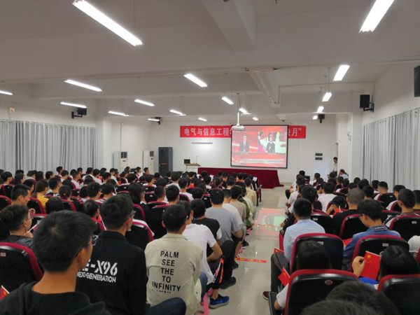 从9月27日至10月25日,学院每周五下午播放一部爱国影片,组织教职工党员、学生党员观看,教育引导广大党员在新时代自觉弘扬践行爱国主义精神,立志做爱国奋斗精神的传承者。此次爱国电影放映月播放内容丰富,包括《建国大业》、《建党伟业》、《太行山上》、《英雄儿女》、《我的长征》等优秀影片,电气工程与智能控制专业2017级-1班班长许周杰说:观看《建国大业》,更深入地了解新中国的建立史、奋斗史、曲折史,认识到如今美好生活是中国共产党带领全国人民不断奋斗的结果,更加坚定我们爱党爱国的决心。