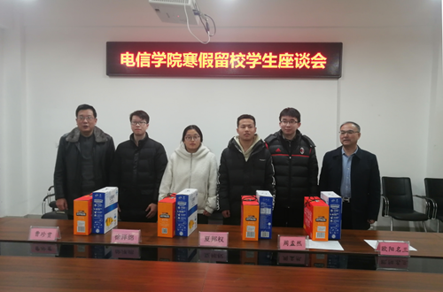 1月20日下午,电气与信息工程学院在励行楼B415会议室召开寒假留校学生座谈会,学院领导班子全体成员、各年级辅导员及4名因疫情原因留校学生参加。会议由学院党委副书记徐泽绵主持。
