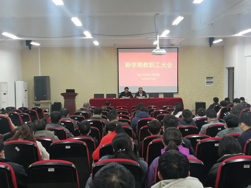 3月18日下午,电气与信息工程学院在励行楼B112召开新学期全院教职工大会,传达学习全国两会精神,部署学院近期重点工作。会议由学院党委副书记、院长周孟然主持。