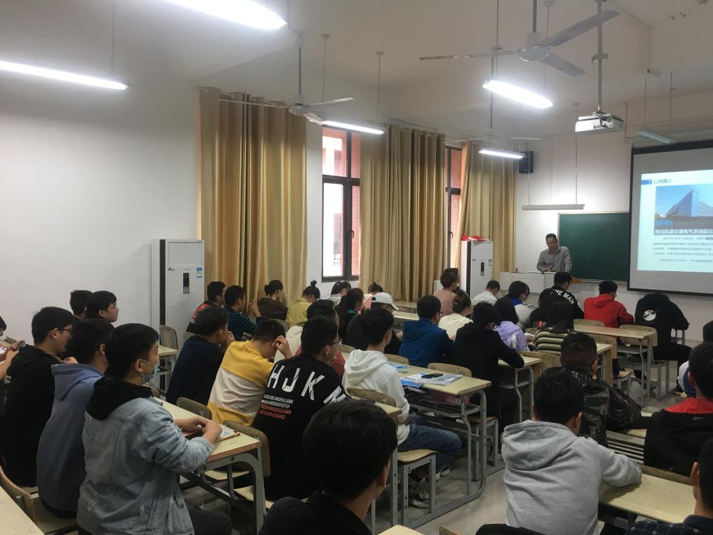 公司招聘负责人张彩霞介绍了公司的基本概况,公司是中国自动化集团(香港上市公司)下属的控股公司,主要以研发、生产、销售各种为铁路干线及城市交通车辆(地铁、轻轨、电动汽车等)配套车辆牵引变流及控制系统、车辆辅助电源系统和网络监控系统(TCMS)等关键电气设备为主的专业化企业。并就企业文化、岗位需求、薪资福利、企业发展等方面学生所关心的问题和学生进行互动交流。