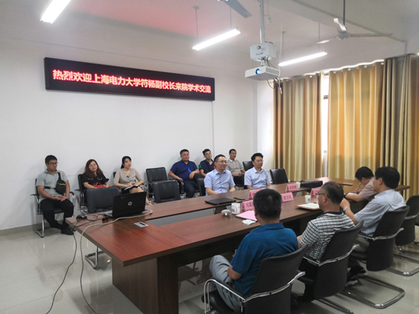8月8日下午,上海电力大学符杨副校长带队来我院开展学术交流,上海申传电气股份有限公司董事长郑昌陆一同参加交流。校党委副书记虞宝桃亲切接见符杨一行并致辞。交流会由学院执行院长周孟然主持,学院相关领导及教师代表参加交流会。