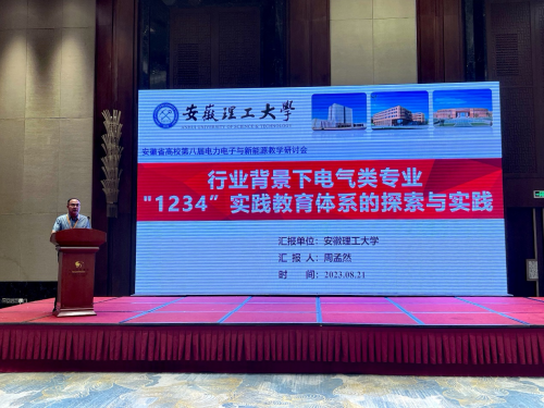 8月21日至22日,由合肥工业大学电气与自动化工程学院、中国电源学会新能源电能变换专委会、安徽省能源动力与电气类专业合作委员会、安徽省电子信息自动化及通信类专业合作委员会主办,安徽工业大学电气与信息工程学院承办,固纬电子(苏州)有限公司、安徽芒课教育科技有限公司协办的安徽省高校第八届电力电子与新能源教学研讨会在马鞍山召开。电气与信息工程学院院长周孟然教授受邀带队参会,并作题为《行业背景下电气类专业“1234”实践教育体系的探索与实践》的主题报告,报告从行业背景下人才培养新要求入手,与参会代表分享了学院在电气工程及其自动化专业实践教育体系方面的探索和成效。