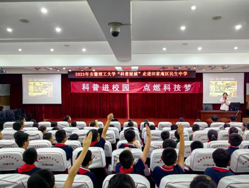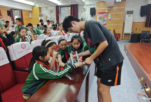 为深入贯彻落实习近平总书记关于“科技创新、科学普及是实现创新发展的两翼,要把科学普及放在与科技创新同等重要的位置”的重要指示精神,帮助中小学生认识科学、走进科学、热爱科学,9月21日,在电气与信息工程学院团委组织下,电子设计协会、化学与火药纹画社、航模与科技践行协会大学生们走进淮南市田家庵区民生中学联合开展大手拉小手科普展演活动。