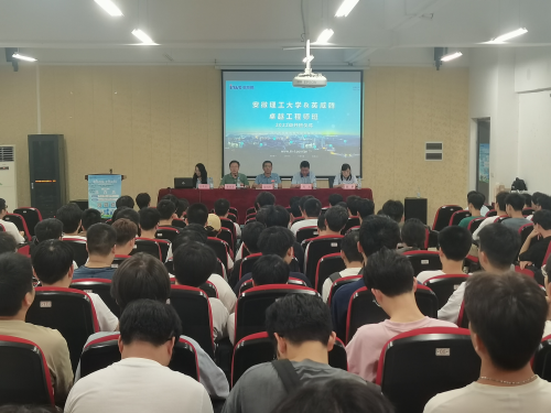 9月18日下午,由安徽理工大学、深圳市英威腾电气股份有限公司合办的第三届“英威腾卓越工程师班”开班仪式在励行楼B112报告厅举行。深圳市英威腾电气股份有限公司应用技术服务中心总监高龙、校招主管陈梦、校招负责人王慧贤,电气与信息工程学院领导班子成员、卓越工程师班班主任及46名学员参会,开班仪式由学院副院长曹珍贯主持。