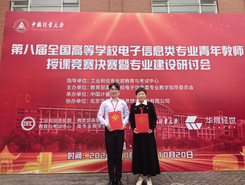 10月18日至20日,第八届全国高等学校电子信息类专业青年教师授课竞赛决赛暨专业建设研讨会在中国计量大学举办,电气与信息工程学院党委书记徐关怀、副院长曹珍贯带队参加。共有来自浙江大学、哈尔滨工业大学、武汉大学、国防科技大学、西安电子科技大学等院校的132名选手进入决赛,经过激烈角逐,我校电气与信息工程学院教师甘福宝荣获本次赛事全国一等奖、教郝娟荣获本次赛事全国二等奖,为我校在该项赛事中取得的历史最佳成绩。