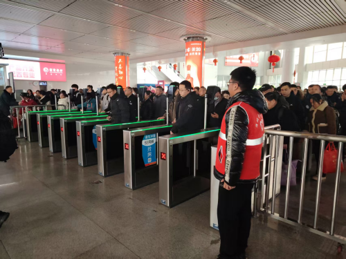 学生在在南昌西站担任引导员